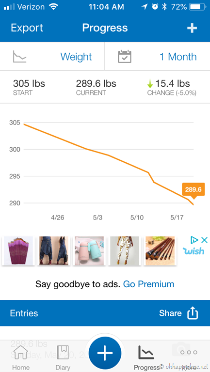 • Becky: Happy to be losing weight. This week has been a wild horrible ride in our life but this too shall pass and life will adjust and so will we. I have learned if I do not take care of myself first then I am in no position to take care of anyone else so I can not give up on my health goals just because sometimes life beats the crap out of us.