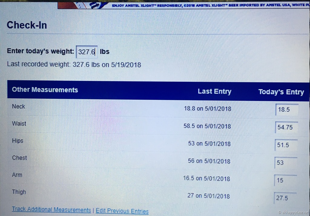 The Day’s Events: Today we got the call from the nutritionist that we have to meet with before surgery and after juggling a bit with Stewart’s co-workers, we have an appointment June 4th to meet with them. Thankfully it looks like our Blue Cross Blue Shield insurance should cover the visit so YAY hopefully no cost to us! She said just to have the basic info ready like start weight, diet attempts, our last weight, and such ready. I think I will swing by before the appointment and see about getting any paperwork they need so we can have it filled out ahead of time. We like to be prepared and ready to speed things along a bit any time we can!
