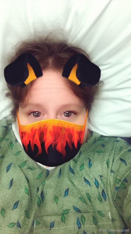 I text my daughter silly snap chats and texted Stewart a message on Facebook just to let him know I wasn’t wigging out too bad and that everything was going to be ok. Finally they surgery team comes to my door about the same time Anna tells me dad is in his room and they are going up to see him. As they ready me to be rolled out I tell mom, “He is in room 405, tell him I love him!” They give me something that relaxes me and rolls me away.