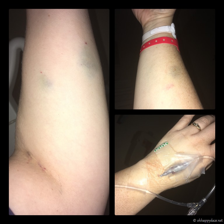 I barely remember anything after that, glimpses of them prepping me, and then nothing. The next thing I know I jump startled, I hear, “Oh no she pulled out her IV.” “I can’t get it” “I’ll try here” Two people on either side of me trying like crazy to get an IV in my arms and I am in some serious pain. My stomach felt like it was cut from my sternum to my belly button. I ask was it laparoscopically, “Yes” was the response as they continue to struggle with my veins that have always been a problem to stick. I am getting to the point of tears and I tell them ok guys y’all need to get it because this is just too much.” Right-hand lady says, “I think I got it!” at the same time left-hand lady says, “Finally, I have it in!” I kind of zone back out again.