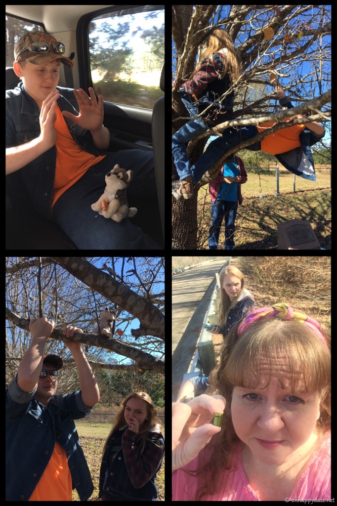 Another geocaching adventure, can’t seem to make them darn kids behave even in cemeteries but they love their tree climbing!