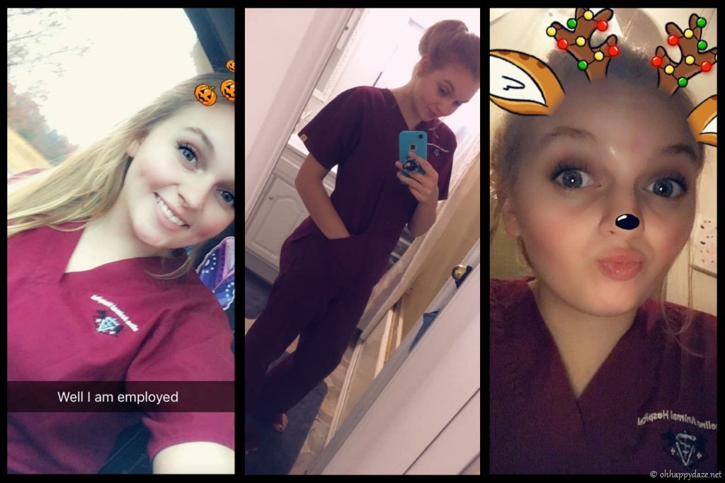 I am extremely happy to say my daughter got a job at an animal hospital like she had been wanting for about a year now! She will also be eligible to become a vet tech through their in house program when she is ready too. She does look awfully cute in scrubs!
