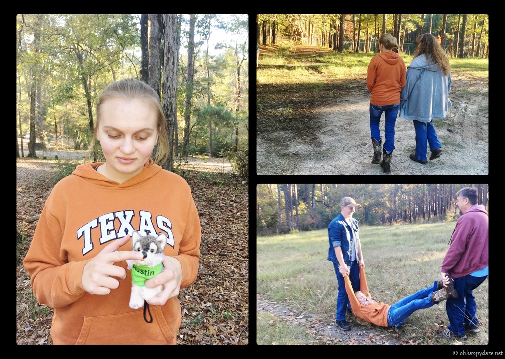 Hiking with the kids at Martin Dies Jr State Park! Anna made a froggy friend along the way. That little frog rode on her hand most of the way around the trail until she made him get off, I bet he was liking the warmth! Adam stepped on a Cottonmouth water moccasin but thankfully it was too cold to do more than just want to get away from his big feet!