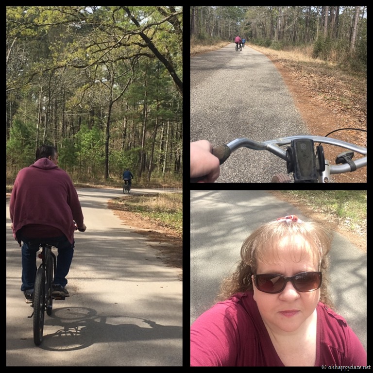 Now that the weather is getting nice again we are trying to get back into exercising to lose the rest of this weight! We went and biked Caney Creek. It is a 3-mile round trip ride and has one really rough hill to get up. I made it one way without having to get off and walk my bike, that was pretty good considering how much muscle mass I have lost since surgery. I did have to walk it, someone, the way back but every little bit counts.