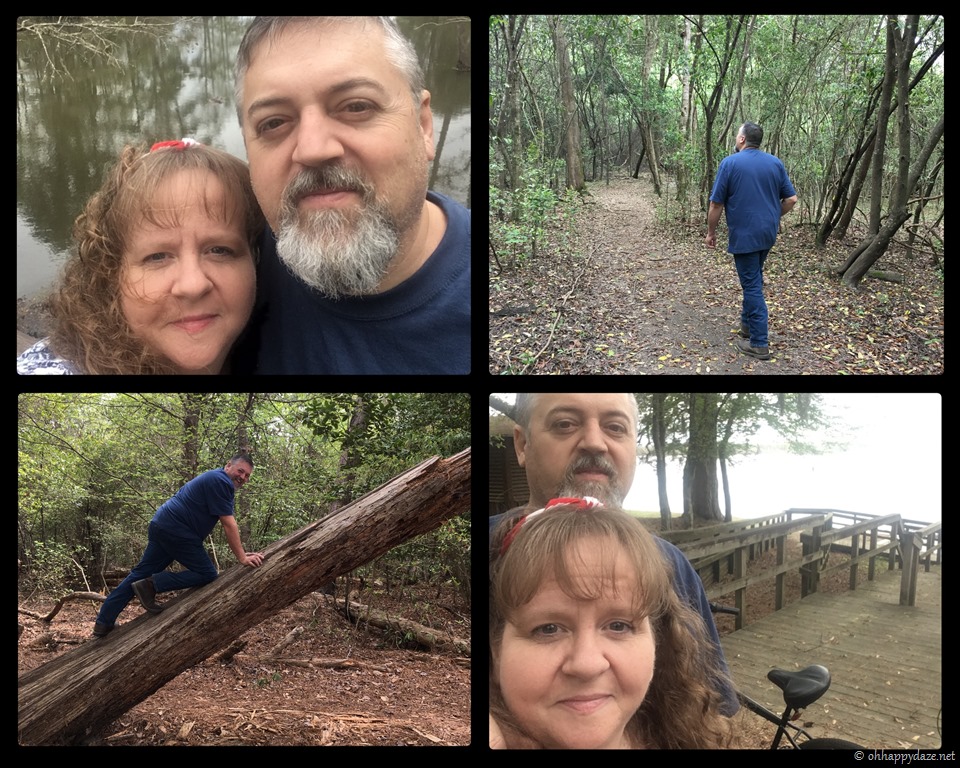 We had a really nice time, it was pleasant and peaceful and I really enjoy just spending time with the love of my life. We got to the one angled tree the kids ALWAYS climbed when they were with us and I mentioned something about the kids not being there, so my silly husband attempts to climb it so that our hike would not be incomplete for me. It proved harder than he thought but laughing at him did help me not be bummed that the kids weren’t along this time. Sure, we usually laugh more at their antics when they are there but we can have our own antics too. We are having to relearn how to just be regular people instead of only parents, it is scary at times but also exciting. We talked about what kinds of things we could so once he retires, hosting at State Parks is a real option and we could have adventures every day if we wanted! As long as I have this guy by my side, I know I will be ok, where ever life takes us!