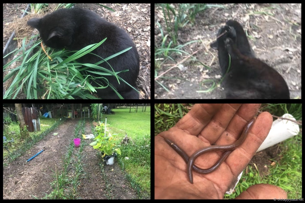 Hubby stay busy in the garden growing yummy veggies for us! He always has some company!