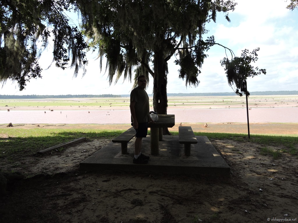The trees here have beautiful moss growing in them which was the prettiest part of the park today since there was no water, just a muddy lake bed.