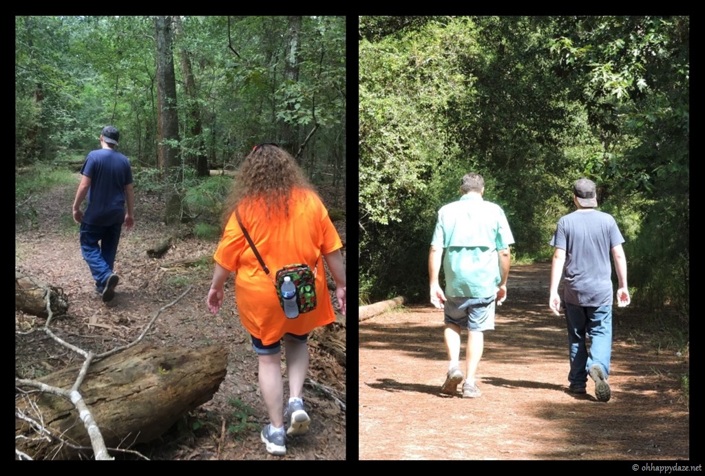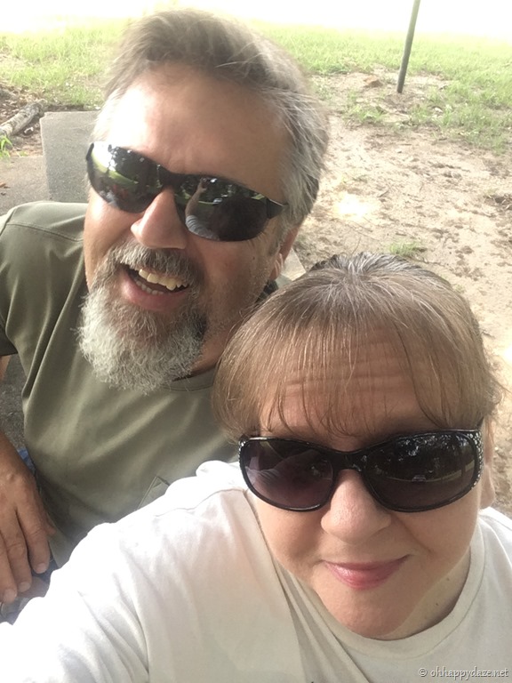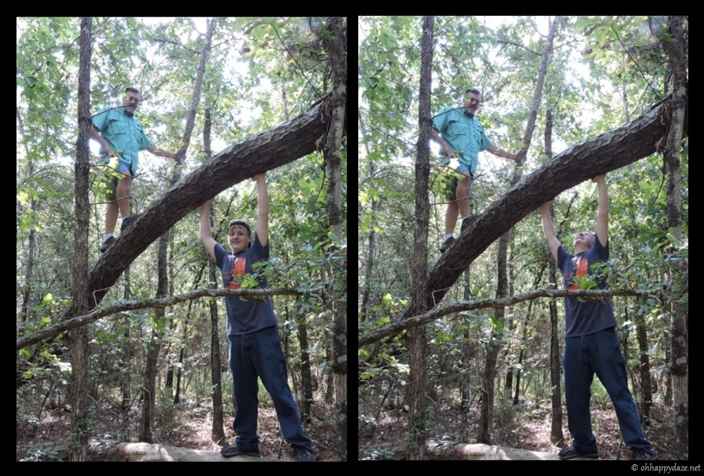 We decided to take a hike at Livingston State Park in hopes to find some of the petrified wood they claimed to be there, we only found a barely travelable hiking trail but hubby made good use of the downed trees. He said if Aust was here he would have been up that tree so he had to see if he could instead, Adam pretended to hold the tree up.