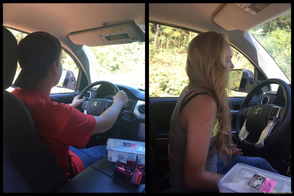 Anna came down to visit, fulfilling her promise that at least once a month she would come down and go on a family outing with us. We went geocaching with these two and they both had to take turns driving the new truck.