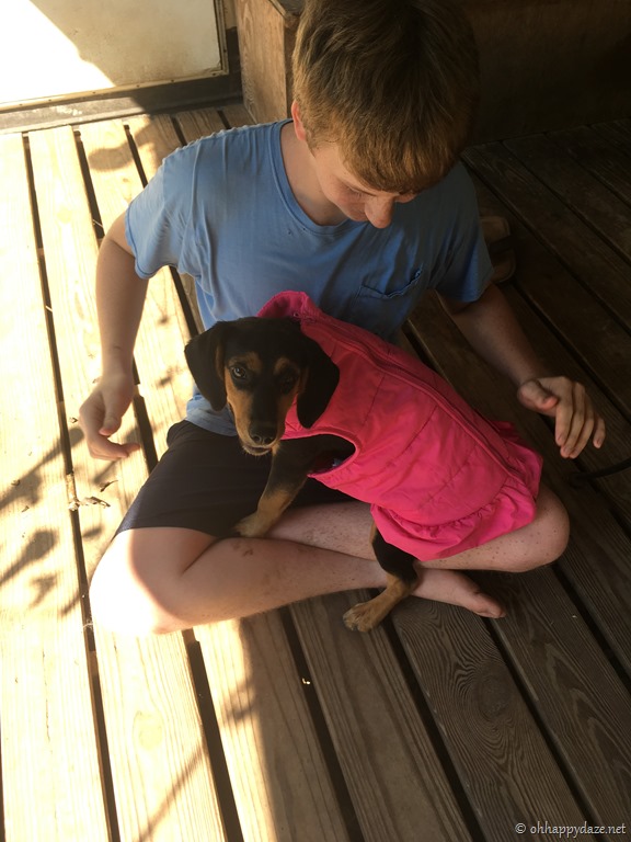 Anna is still enjoying her job as a vet tech and Adam is enjoying his pup Sadie, glad to be past the heat and the “dog days of summer.”