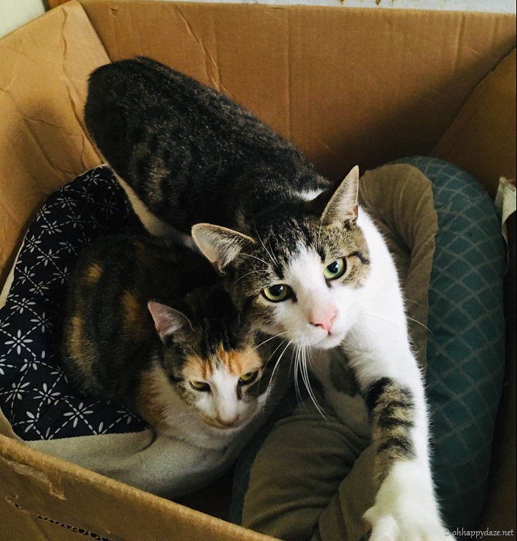 Our sweet kitten rescues have grown into beautiful cats, Friend (the male) is very loving and social, Precious, not so much, they are the perfect examples of introvert and extrovert!
